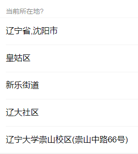 在校版本的自动填写会被填写成这样,然后在校在岗会被填成辽宁大学崇山校区。同样的蒲河校区版就不截图了,在校在岗会被填写成蒲河校区。(还没有为武圣的小伙伴配置)