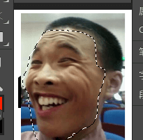 然后,选中人像图层,用索套工具大致把脸选中,像这样: